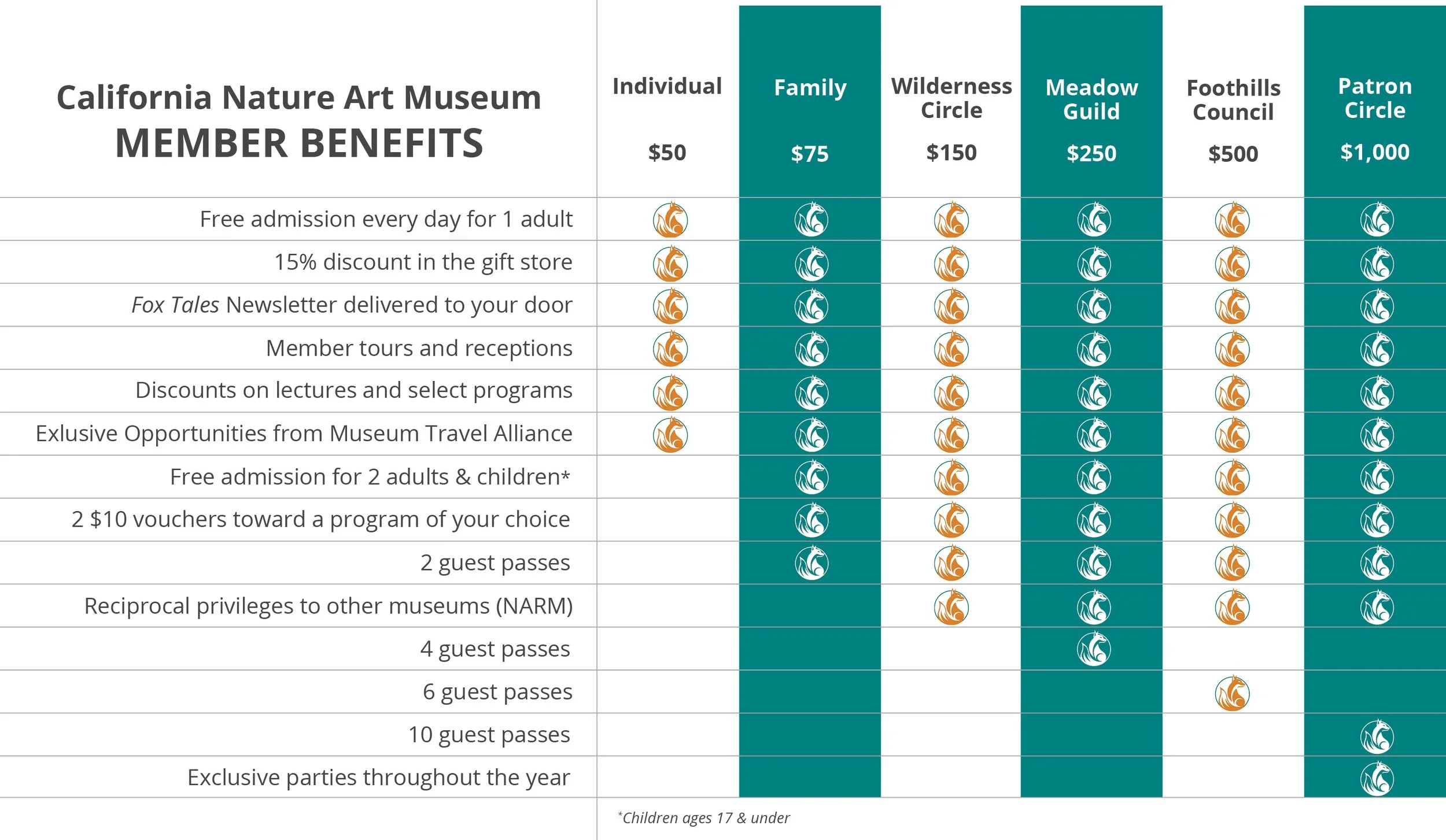 North American Reciprocal Museum (NARM) Program: Members at the Wilderness Circle level and above are enrolled as part of the North American Reciprocal Museum program. NARM members receive free admission to over 1,200 museums across the U.S. and Canada! Click here to learn more. It’s an incredible value - like many memberships, for the price of one!